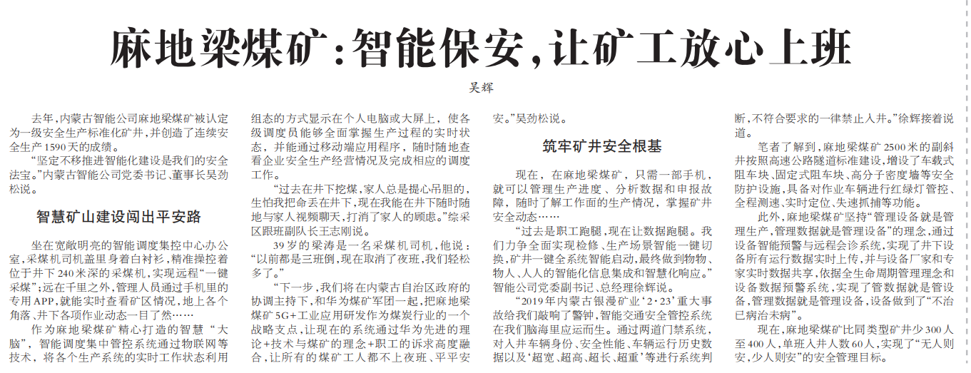 2月15日《中國煤炭報(bào)》3版:皖北煤電麻地梁煤礦智能保安,讓礦工放心上班